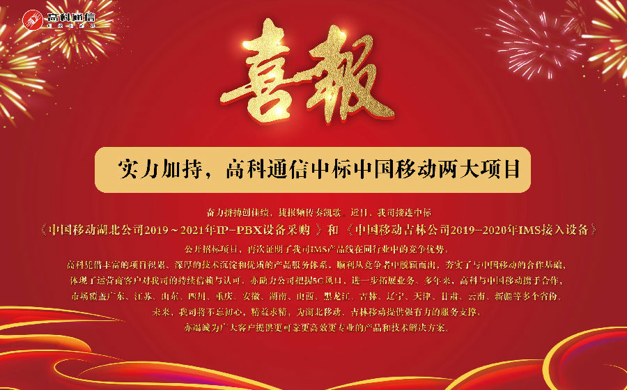 喜報|熱烈祝賀高科成為湖北和吉林移動IMS設備供應商